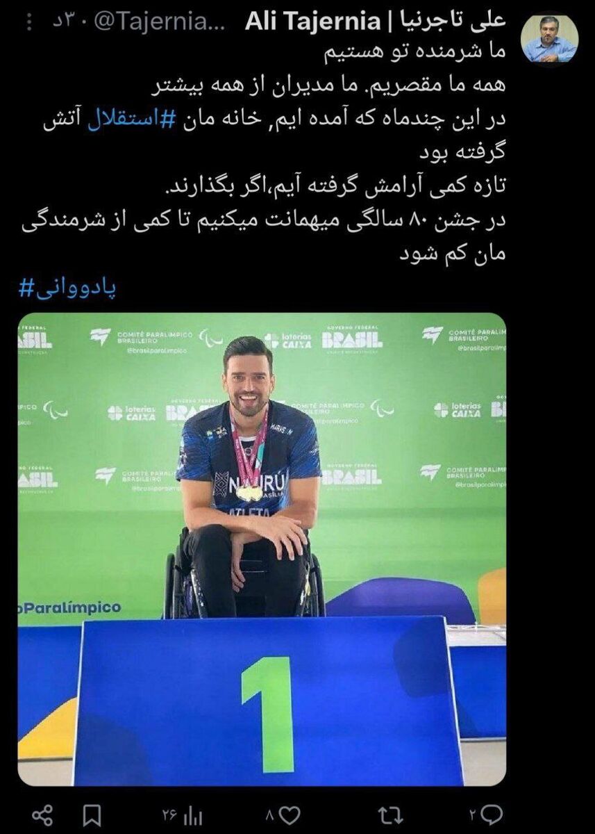 علی تاجرنیا در پاسخ به مصاحبه لئاندرو پادوانی توییت جدیدی منتشر کرد.