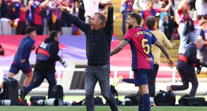 فلیک درباره این سوال که آیا احساس میکند تیمش قهرمان لالیگا شده است، اینگونه پاسخ داد: نه. هنوز قهرمانی قطعی نشده است و برای قهرمانی به یک پیروزی دیگر نیاز داریم. این فوتبال است. ما در موقعیت خوبی هستیم اما هیچکس نمیداند چه خواهد شد. همه رقبای ما میخواهند ما را شکست دهند. وقتی مربیگری یک تیم جدید را بر عهده میگیرید، اهداف مشخصی دارید و وقتی در باشگاهی مانند بارسلونا کار میکنید که به پیروزشدن عادت دارد، این هدف همه است. این سفر هنوز تمام نشده است. ما باید در دفاع بهبود یابیم. باید در دفاع پایدارتر باشیم. رئال مادرید بازیکنان برجستهای دارد که میدانند چگونه به ما حمله کنند و دفاعکردن برابر آنها آسان نیست. ما اشتباه میکنیم و باید بهبود بیابیم. تمرین و یادگیری با نزدیکبودن بازیها آسان نیست. میخواهم این پیروزی را جشن بگیرم. بسیار خوشحالم. باید به کار خود ادامه دهیم. جو عالی است.