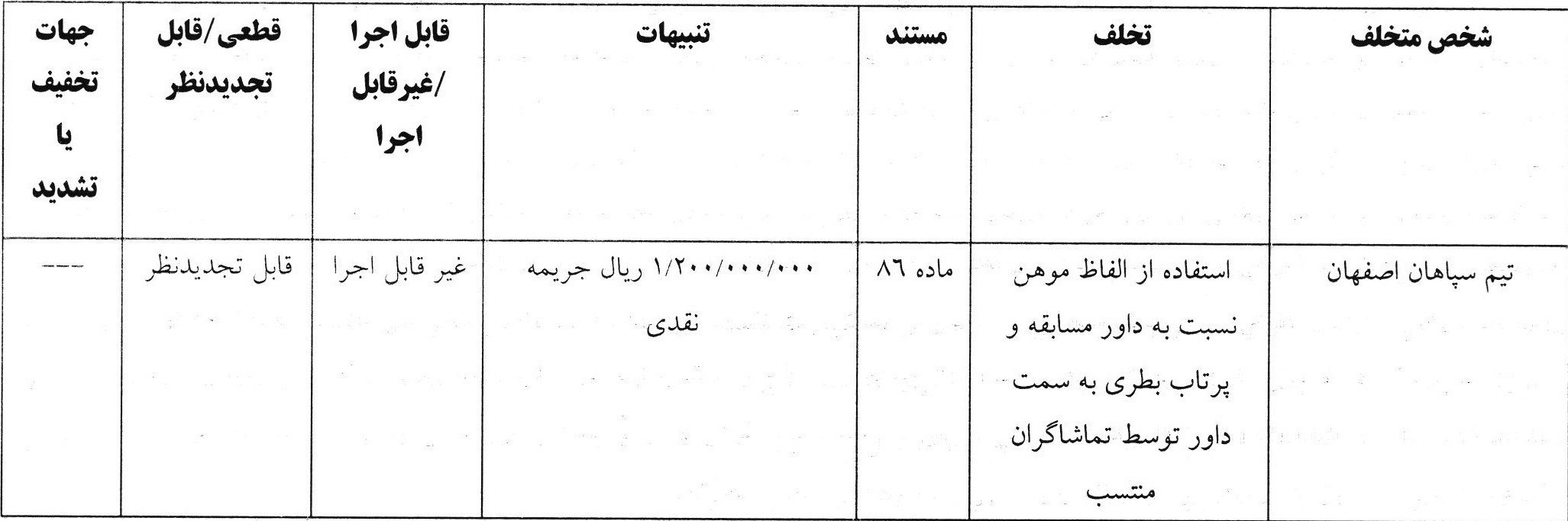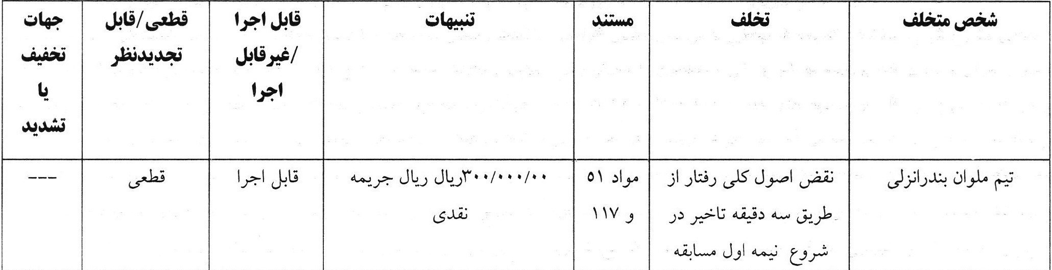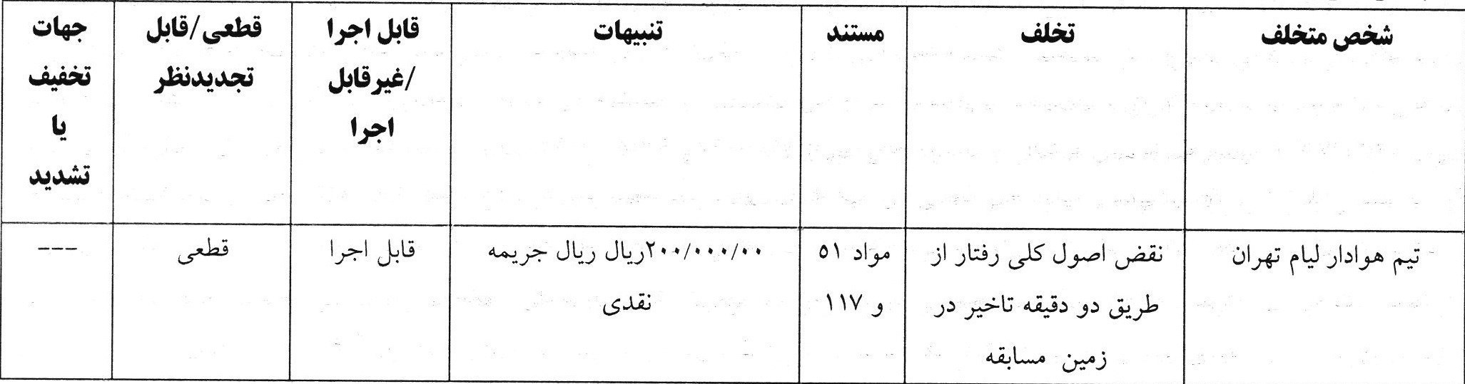 کمیته انضباطی فدراسیون فوتبال جرایمی را برای تعدادی از تیمهای لیگ برتری در نظر گرفت.