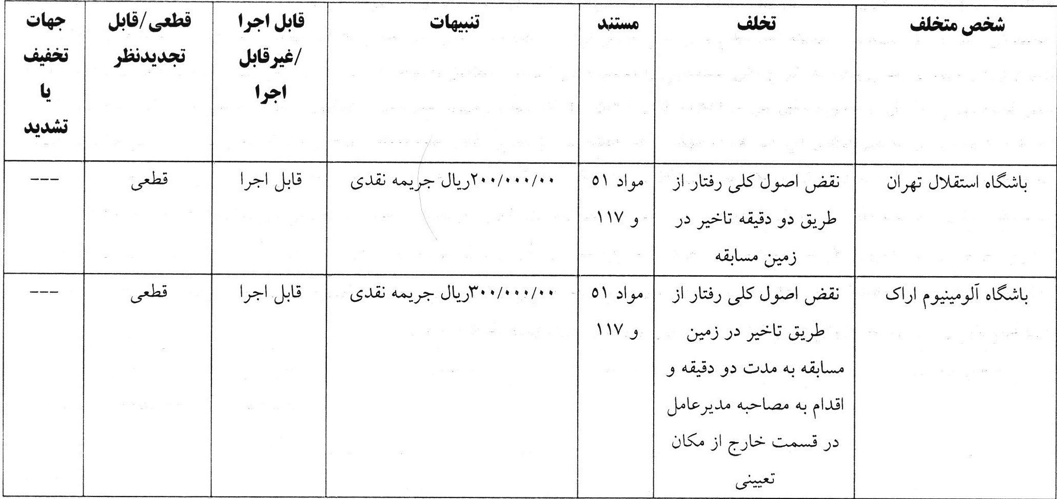 * رأی تخلف تیمهای استقلال تهران و آلومینیوم اراک
