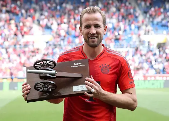 هری کین برای دومین فصل پیاپی با یپراهن بایرن مونیخ موفق شد آقای گل بوندسلیگا شده و جایزه ویژه خود را امروز در آخرین بازی فصل دریافت کرد.