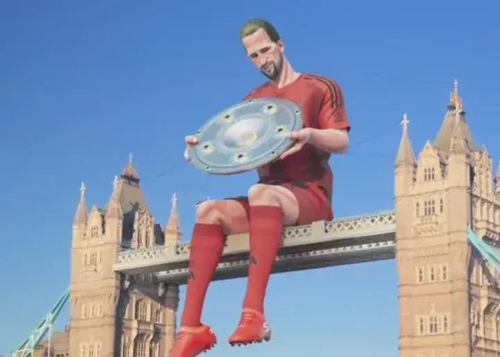 به مناسبت اولین قهرمانی هری کین، یک ماکت متحرک از ستاره خط حمله بایرن مونیخ در پل تاور بریج لندن نصب شد.