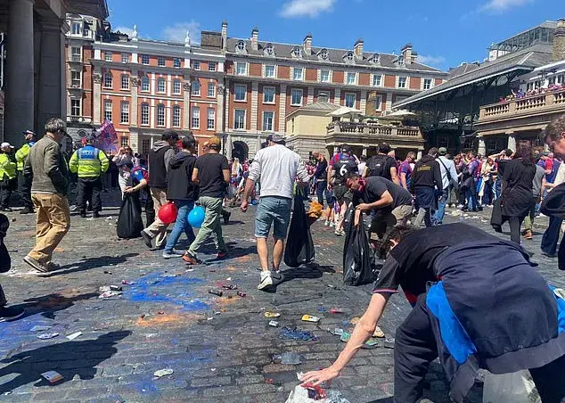 تصاویر منتشر شده از خیابانهای لندن نشان میدهد هواداران کریستال پالاس با به دست گرفتن کیسههای زباله بزرگ مشغول جمعآوری زبالههایی هستند که توسط هواداران دو تیم روی زمین ریخته شده بود.