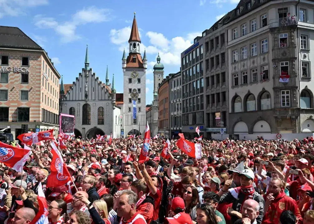 بازیکنان بایرن مونیخ در میدان مشهور مارینپلاتز شهر مونیخ قهرمانی را به شکلی باشکوه با هوادارانشان جشن گرفتند.