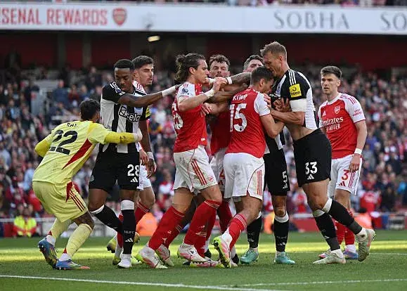ولی آرسنال با گل دکلان رایس پیش افتاد و درحالیکه بازی به آخرین ثانیهها رسیده بود عصبانیت شدید بازیکنان نیوکسل و سطح بالای تنش به درگیری شدید بین بازیکنان دو تیم منجر شد.