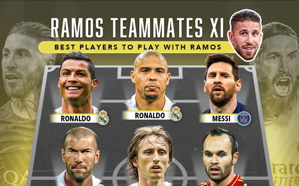 تعداد پرشمار اساطیری که راموس کنار آنها جنگیده، باعث شد تا پلتفرم Score 90 طرح گرافیکی مربوط به یک تیم منتخب از بهترین همتیمیهای اسطوره رئال مادرید را منتشر کند. در این ترکیب، ۶ بازیکن (رونالدو نازاریو، کریستیانو رونالدو، لیونل مسی، زین الدین زیدان، فابیو کاناوارو و لوکا مودریچ) با سابقه کسب توپ طلا دیده میشوند که نشان از عظمت آن است.