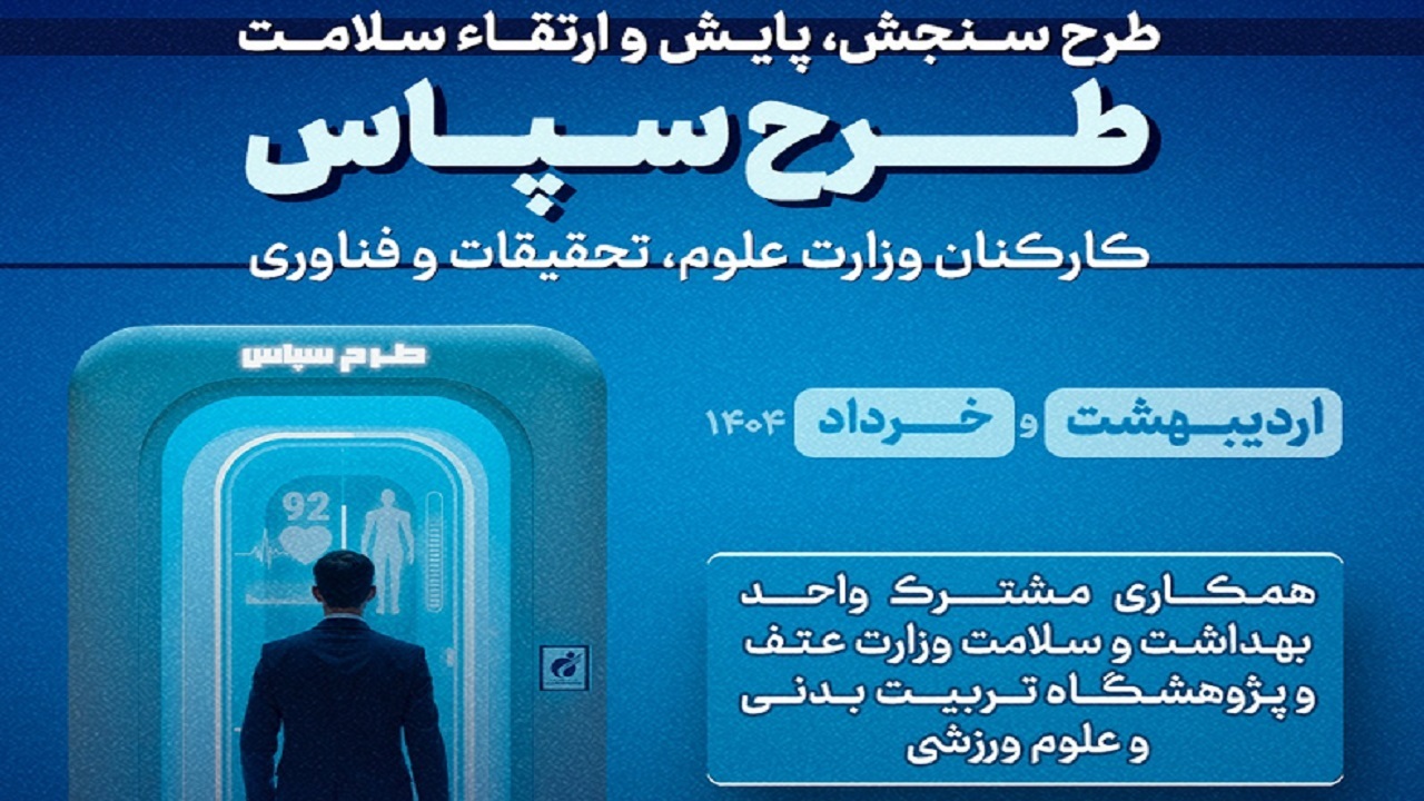 باشگاه خبرنگاران جوان – در راستای تحقق رویکردی نوین و تحولآفرین در نظام سلامت اداری کشور، پژوهشگاه تربیتبدنی و علوم ورزشی با همراهی واحد بهداشت و سلامت وزارت علوم، تحقیقات و فناوری، طرح ملی «سپاس» (سنجش، پایش و ارتقاء سلامت) را بهعنوان یکی از ابتکارات کلان و اثرگذار خود به مرحله اجرا درآورده است.