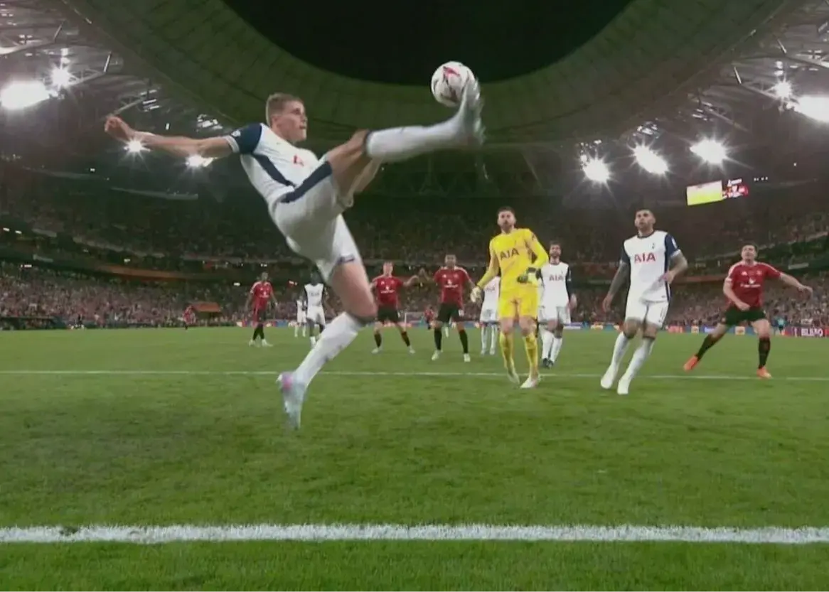 جایی که ارسال بلند از میانه زمین به محوطه جریمه تاتنهام با خروج ضعیف و دفع ناقص گولیللمو ویکاریو همراه شد و توپ مقابل راسموس هویلوند افتاد. مهاجم یونایتد نیز بلافاصله با ضربه سر توپ را به سمت دروازه خالی اسپرز روانه کرد و همه چیز مهیای به ثمر‌ رسیدن گل مساوی یونایتد بود اما فن د فن با حضور به موقع و دفع توپ تماشایی خود مانع از عبور توپ از خط دروازه اسپرز شد و سپس در شرایطی نامتعادل به تیرک دروازه برخورد کرد تا بازی همچنان با برتری شاگردان بیگ آنژ ادامه پیدا کند.