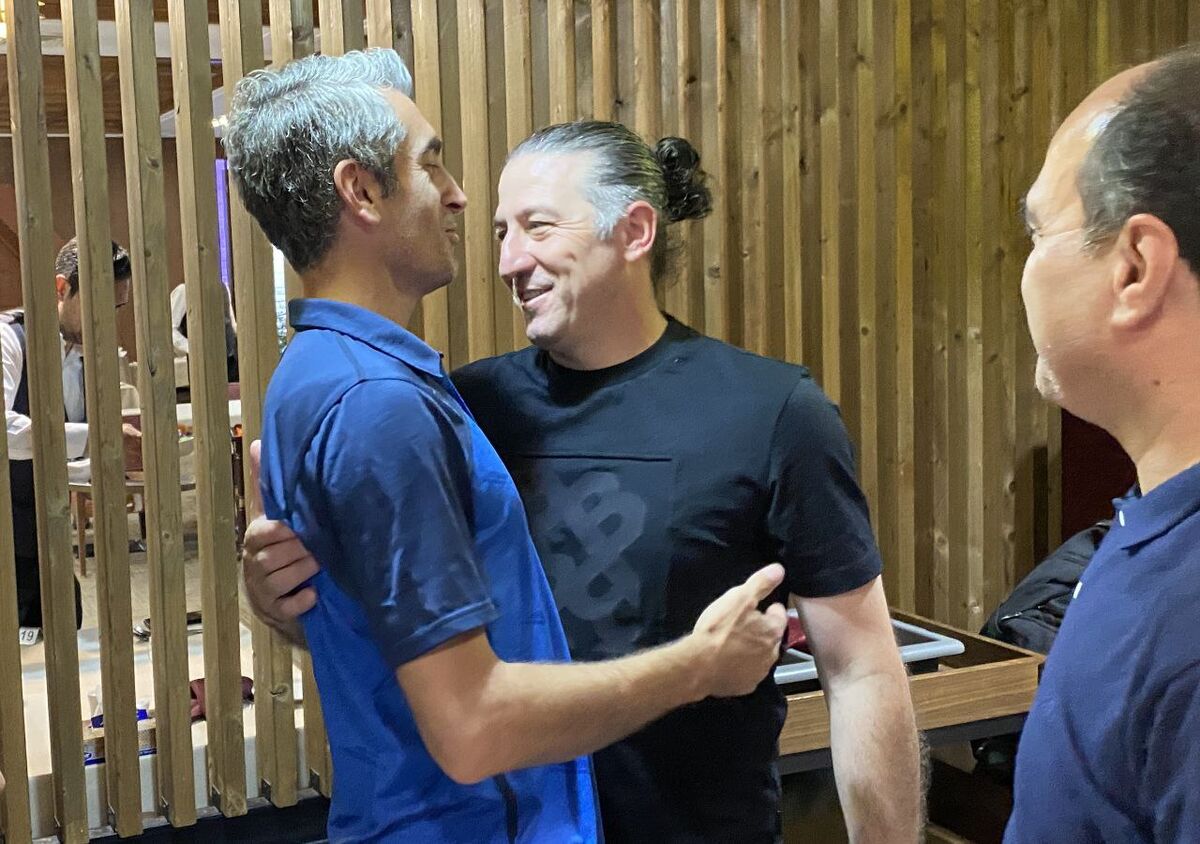 به گزارش خبرورزشی، آندرانیک تیموریان، بازیکن سابق تیم فوتبال استقلال و مربی تیم ملی کشورمان، با حضور در هتل محل اردوی تیم استقلال، با مجتبی جباری، هم بازی سابق خود دیدار کرد.