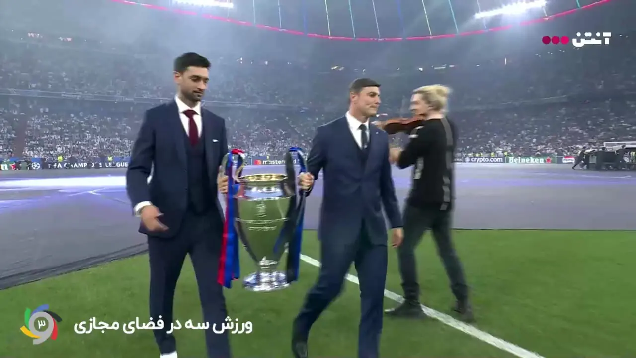 جام قهرمانی توسط خاویر زانتی و خاویر پاستوره در میان اجرای تماشایی و جذاب دیوید گرت(ویانولیست سرشناس جهان) به استادیوم آورده شد