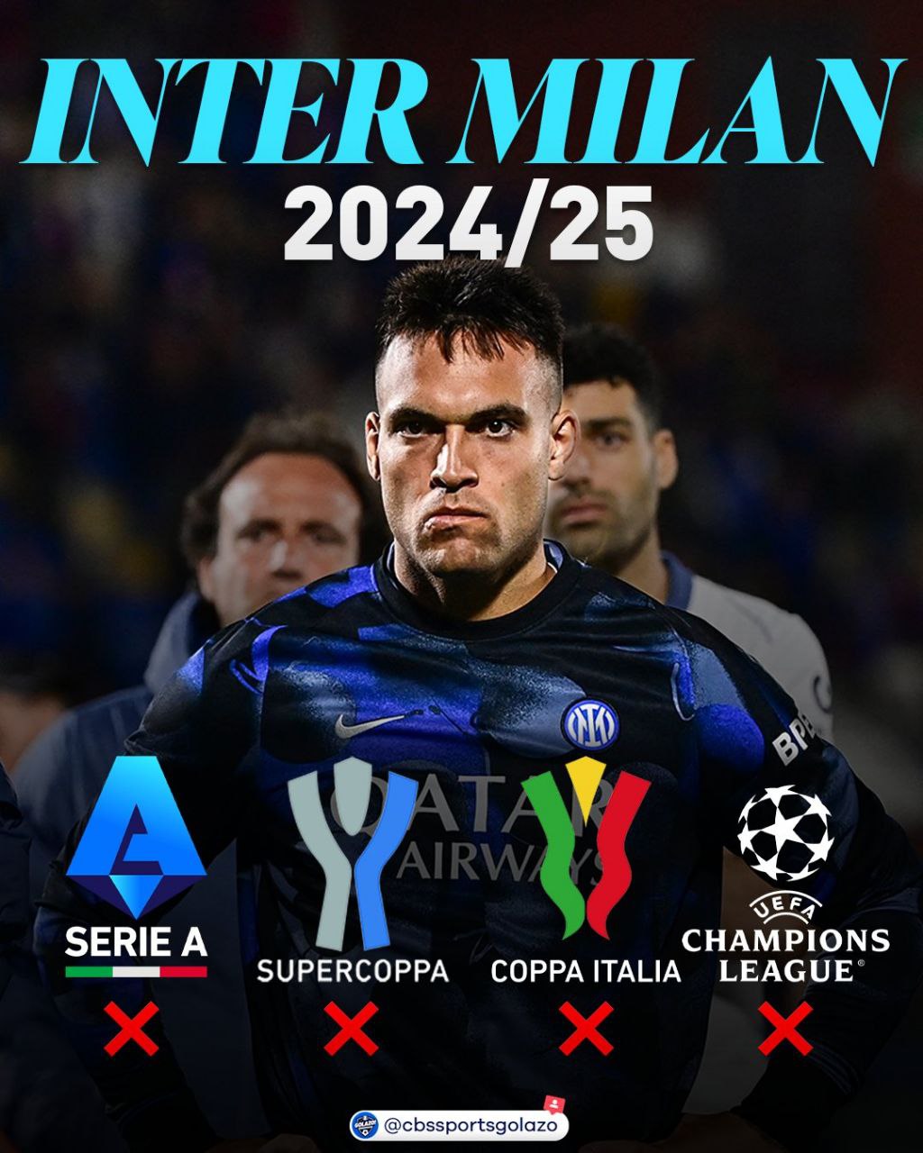 اینتر تا همین یک ماه پیش، شانس سهگانه داشت اما آنها حتی یک جام هم به دست نیاوردند. اینتر با شکست مقابل میلان از رسیدن به فینال کوپاایتالیا بازماند. آنها کورس رقابت در سری آ را به ناپولی باختند و اسکودتو را از دست دادند. به عقیده بسیاری از کارشناسان، اینتر ۲ جام داخلی را فدای لیگ قهرمانان اروپا کرد، اما پازل ناکامی آنها با شکستی تحقیرآمیز در فینال این رقابتها تکمیل شد تا فصل تلخ افعیها، پایانی کابوسوار داشته باشد؛ آنها از رؤیای فتح سهگانه به صفر جام بسنده کردند.