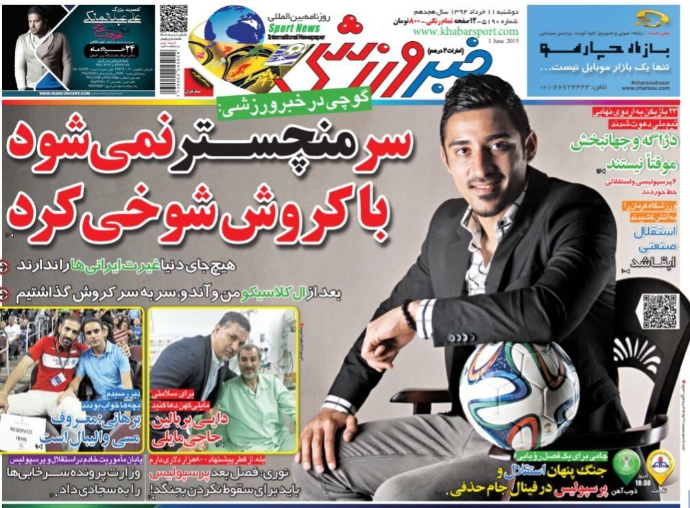 مصاحبه محمد نوری و ادعای کاپیتان اسبق پرسپولیس مبنی بر اینکه در صورت حل نشدن مشکلات این تیم، سرخپوشان در لیگ پانزدهم باید برای سقوط نکردن بجنگند هم از جمله مطالبی بود که یازدهم خرداد سال ۹۴ روی جلد ما به چشم میخورد.