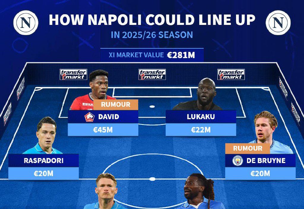 از طرفی شایعات منتشر شده از سوی منابع مختلف خبر از اقدام ناپولی برای جذب بازیکنانی چون میله اسویلار از آاس رم و جاناتان دیوید از لیل می‌دهند. وب‌سایت ترنسفرمارکت ترکیب ۱۱ نفره‌ای از بازیکنان فعلی و گزینه‌های خرید ناپولی برای فصل ۲۶-۲۰۲۵ انتخاب کرده است.