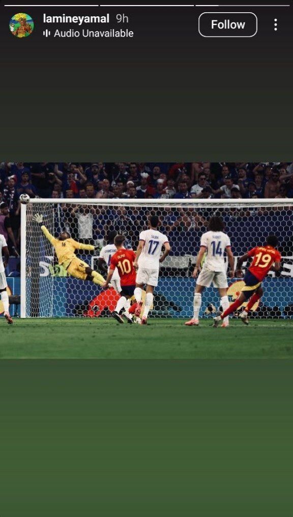 لامینه یامال، ستاره جوان اسپانیا، با انتشار استوری از گلش به فرانسه در نیمهنهایی یورو ۲۰۲۴، هواداران را به وجد آورد.