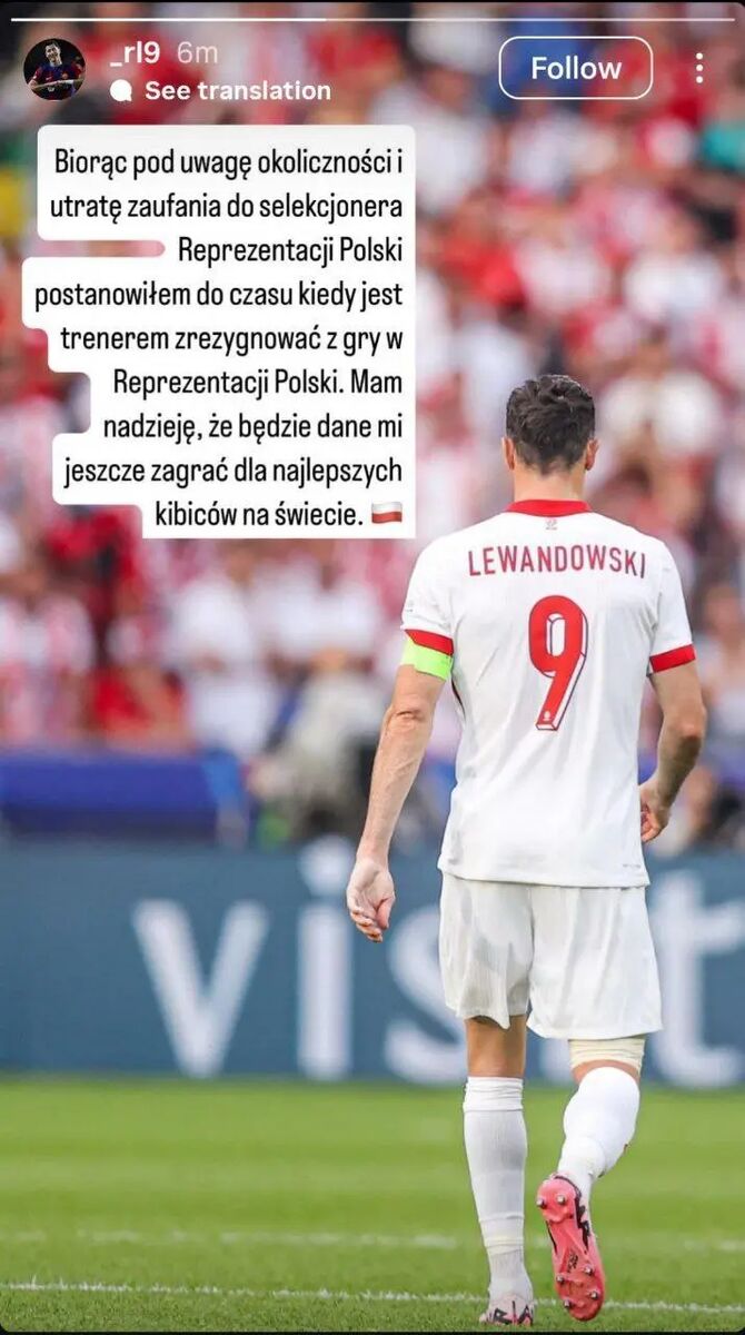 روبرت لواندوفسکی که رابطه خوبی با پروبیرژ ندارد، با انتشار یک استوری اعلام کرده است که تا زمانی که تغییراتی در کادرفنی تیم ملی لهستان ایجاد نشود، دیگر برای این تیم بازی نخواهد کرد.