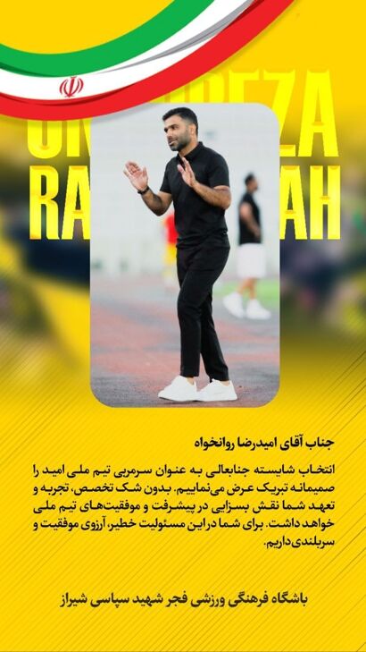 نخستین پیام تبریک انتخاب روانخواه به عنوان سرمربی تیم ملی امید از شیراز فرستاده شد.