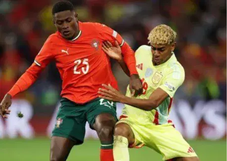 در نیمه اول، کریستیانو رونالدو دو بار با تجربهاش توپ را از یامال گرفت؛ صحنههایی که برای جوانی ۱۷ ساله قطعاً سنگین و تلخ بود. از سمت دیگر، نونو مندس بارها در نبردهای یکبهیک موفق عمل کرد و چند مرتبه یامال را جا گذاشت و از سمت چپ برای پرتغال موقعیتسازی کرد؛ از جمله در صحنه گل دوم.