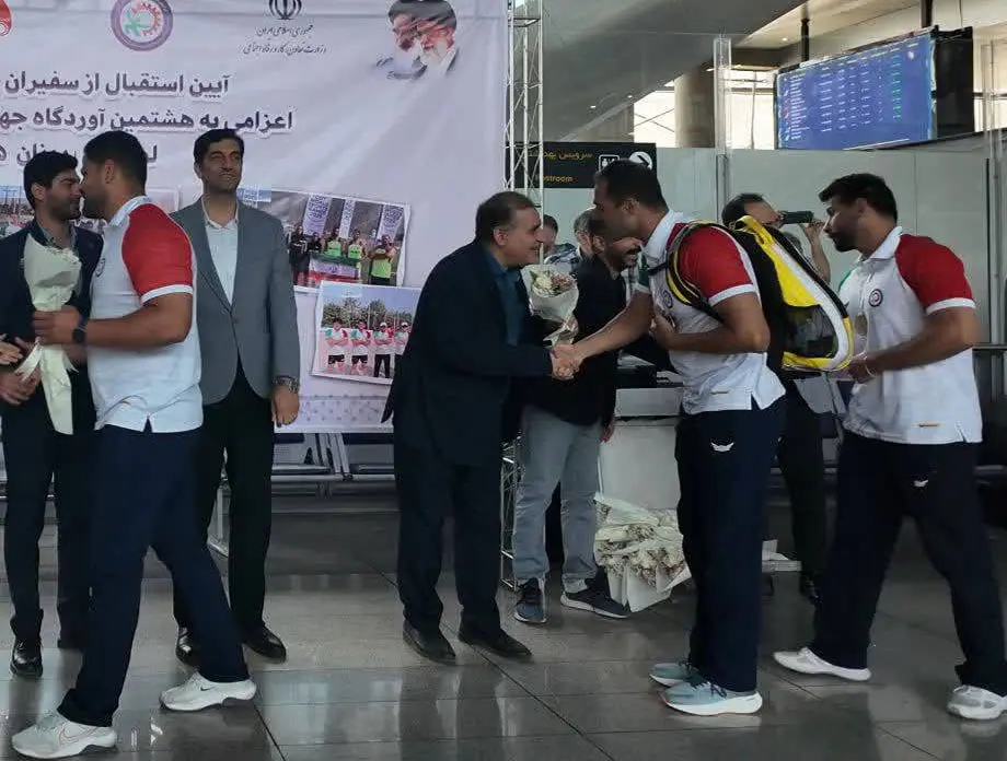 کاروان ورزش کارگری اعزامی به مسابقات جهانی یونان با استقبال رئیس مجمع فدراسیون ورزش کارگری وارد تهران شدند.