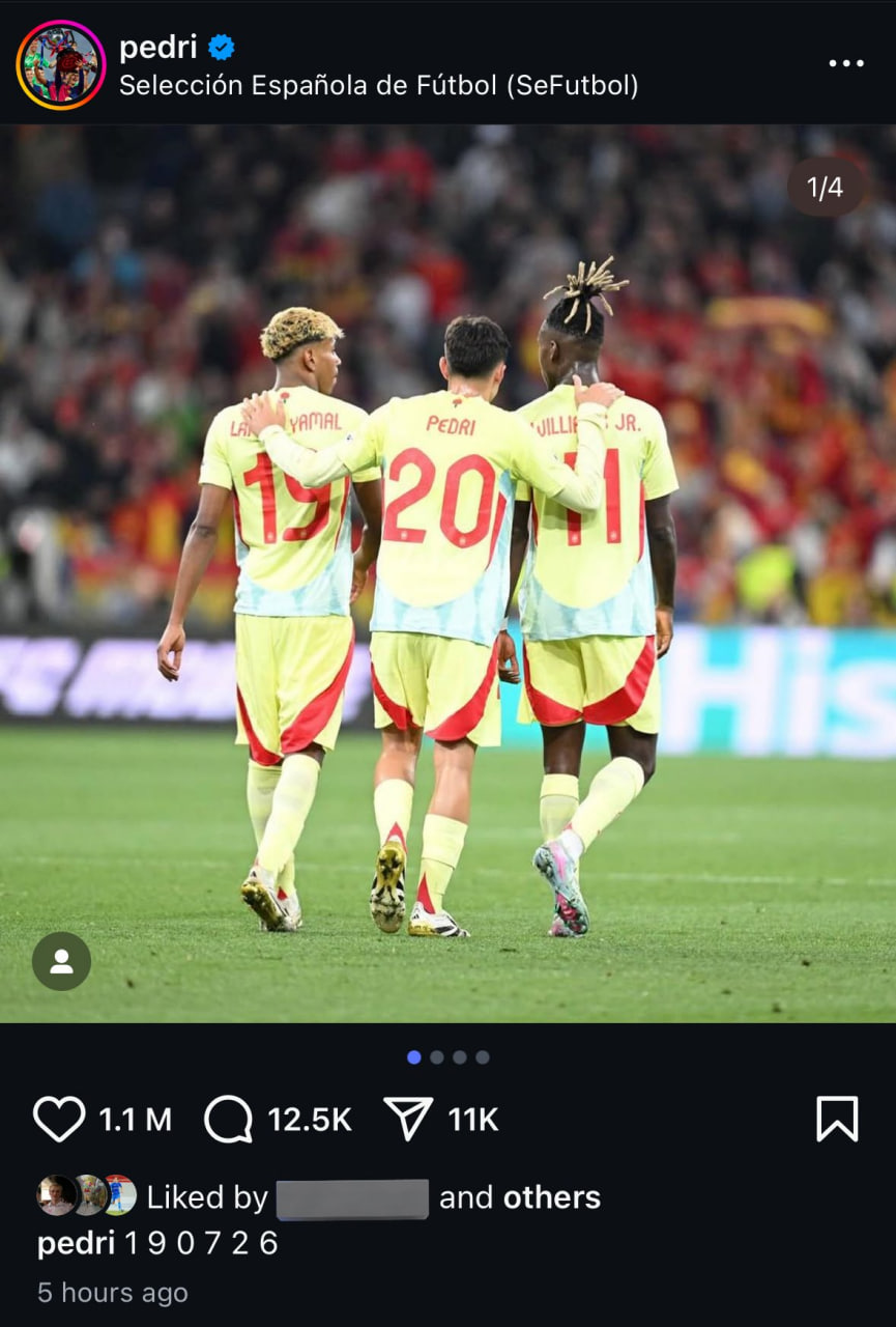 پدری، ستاره بارسلونا که با ارسال یک پاس گل عملکرد خوبی در دیدار نهایی ارائه، پس از شکست مقابل پرتغال پست خبرسازی در اینستاگرام منتشر کرد. در کپشن پست او، عدد ۱۹۰۷۲۶ دیده میشود که در تقویم میلادی، معادل تاریخ برگزاری فینال جام جهانی ۲۰۲۶ (۱۹ ژوئیه ۲۰۲۶) است. احتمالاً پدری به مردم کشور خود وعده داده که اسپانیا به فینال جام جهانی بعدی خواهد رسید.