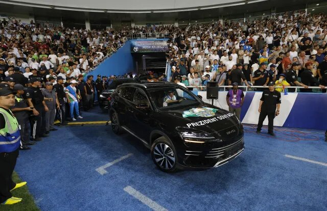 به گزارش ایسنا، شوکت میرضیایف رییس جمهور ازبکستان پس از صعود تاریخی تیم ملی فوتبال این کشور به جام جهانی، به بازیکنان و مربیان این تیم اتومبیل اهدا کرد. مراسم اهدای جوایز دیشب پس از پیروزی ۳ بر صفر مقابل قطر در تاشکند برگزار شد.