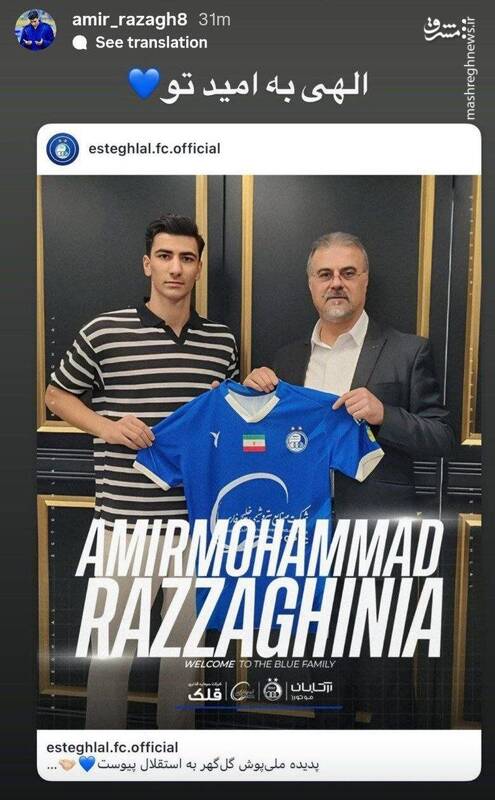 تصویری از استوری امیرمحمد رزاقینیا، پس از پیوستن به باشگاه استقلال را ببینید.