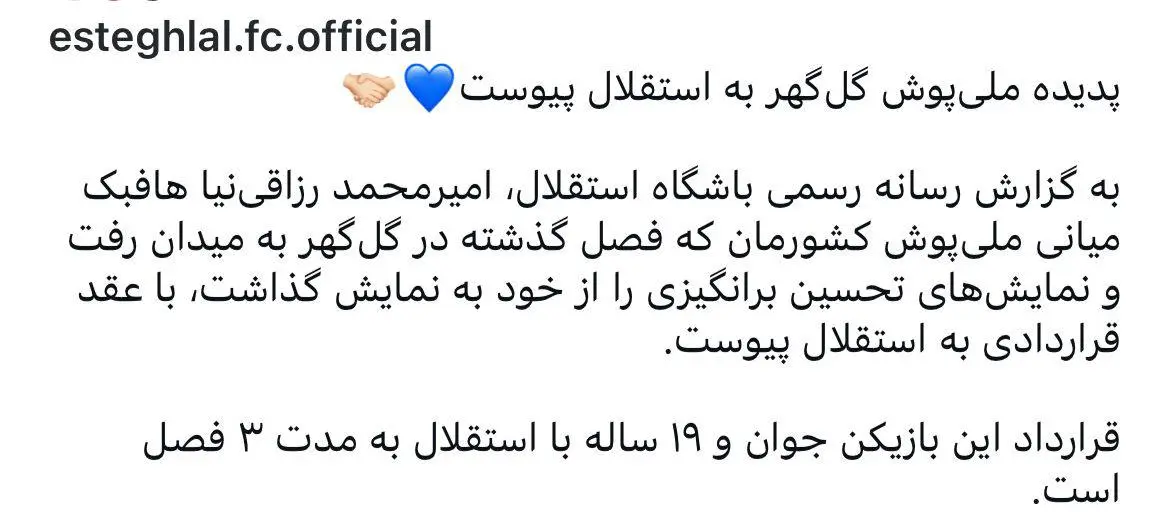 با این حال، اخیراً باشگاه استقلال تهران از امضای قرارداد رسمی با امیرمحمد رزاقینیا، بازیکن جوان خود، خبر داده که بر اساس اطلاعات موجود، سن این بازیکن زیر ۱۹ سال است و مدت قرارداد نیز سه ساله اعلام شده است.