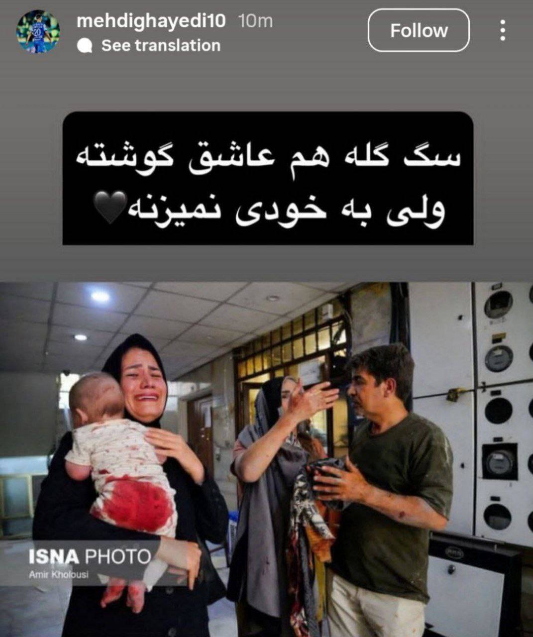 باشگاه خبرنگاران جوان – مهدی قایدی بازیکن تیم ملی فوتبال نسبت به خرابکاریهای وطنفروشان در راستای جنایات رژیم صهیونیستی در صفحه شخصی اش واکنش نشان داد و نوشت: سگ گله هم عاشق گوشته، ولی به خودی نمیزنه