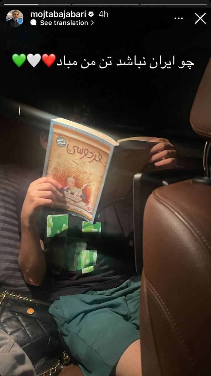 حالا مجتبی جباری، سرمربی فصل گذشته استقلال که به تازگی به این تیم عنوان قهرمانی جام حذفی و کسب کرده در یک استوری اینستاگرامی به جنایات رژیم صهیونیستی واکنش نشان داده و با انتشار تصویری نوشته است: چک ایران نباشد تن من مباد!