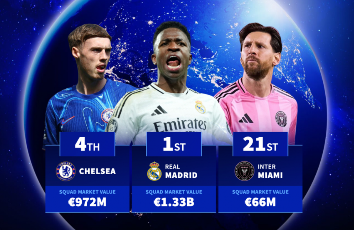 با آغاز جام باشگاههای جهان در فرمت جدید ۳۲ تیمی، رئال مادرید با ترکیبی به ارزش ۱.۳۳ میلیارد یورو صدرنشین ارزشمندترین تیمهای حاضر است و منچسترسیتی و پاریسنژرمن در تعقیب او قرار دارند.