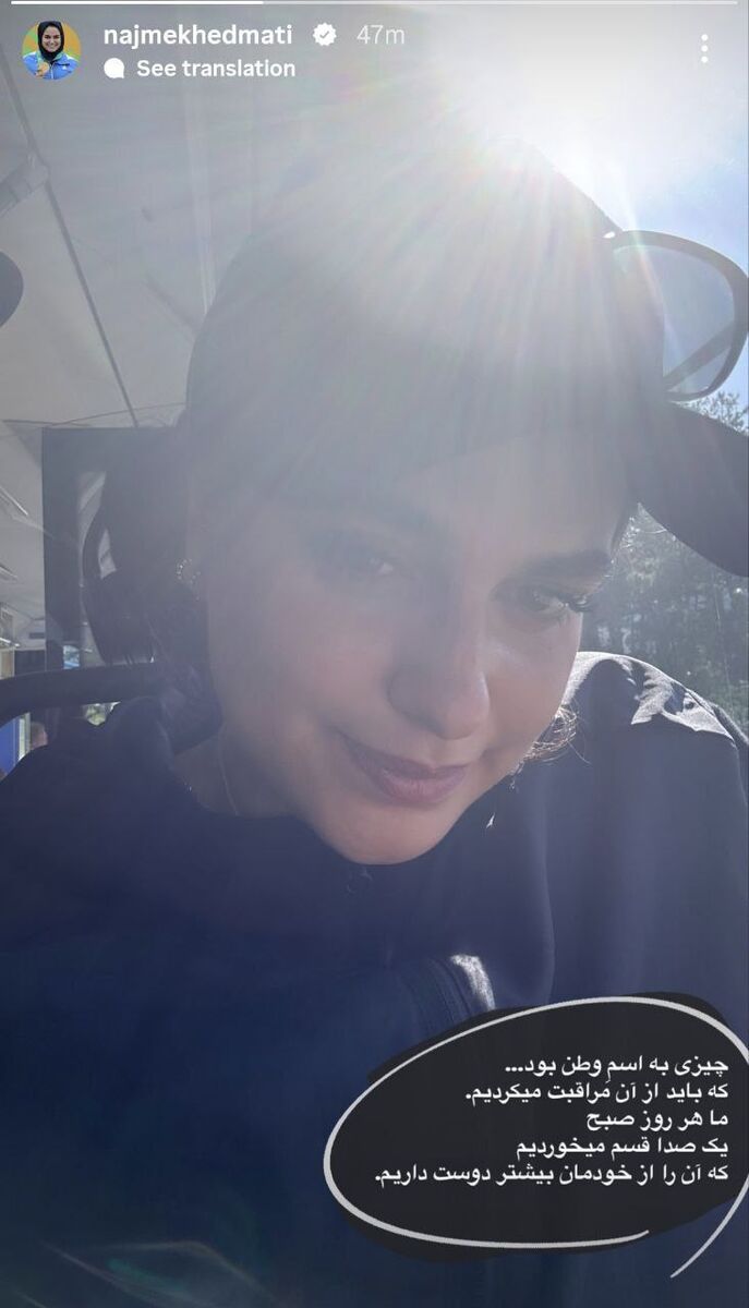 در همین رابطه نجمه خدمتی، تیرانداز المپیکی و نام آشنای کشورمان هم با انتشار یک استوری اینستاگرامی نوشته است: