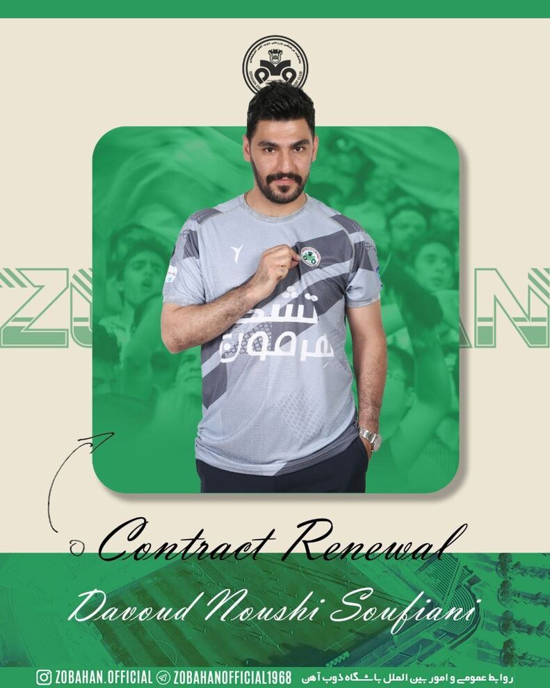 امروز به دستور حدادی فر، داود نوشی صوفیانی دروازه بان تیم فوتبال ذوب آهن که تابستان سال گذشته به ذوب آهن پیوست قرارداد خود با این تیم را به مدت یک فصل دیگر تمدید کرد.