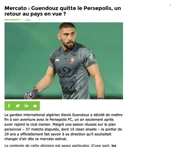 به گزارش خبرورزشی و به نقل از یک سایت الجزایری Dzfoot، الکسیس گندوز، دروازهبان موفق پرسپولیس، تصمیم به جدایی از این تیم گرفته است.