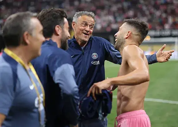 پیش از شروع دیدار پاری سن ژرمن و اینترمیامی، لوئیس انریکه با بازیکنان سابقش دیداری گرم و صمیمانه داشت: لئو مسی، لوئیس سوارز، بوسکتس، ماسکرانو و جوردی آلبا.