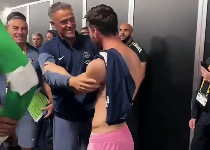 لیونل مسی بعد از بازی اینترمیامی مقابل پاری سن ژرمن در رختکن با سرمربی سابقش لوئیس انریکه روبرو شد و به گرمی از او استقبال کرد.