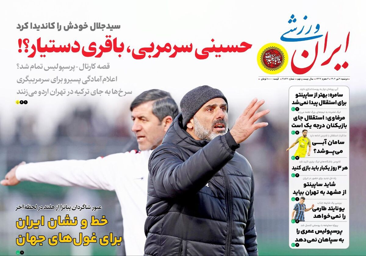 جلد روزنامه ایران ورزشی در روز دوشنبه نهم تیر ۱۴۰۴ را تماشا می کنید.