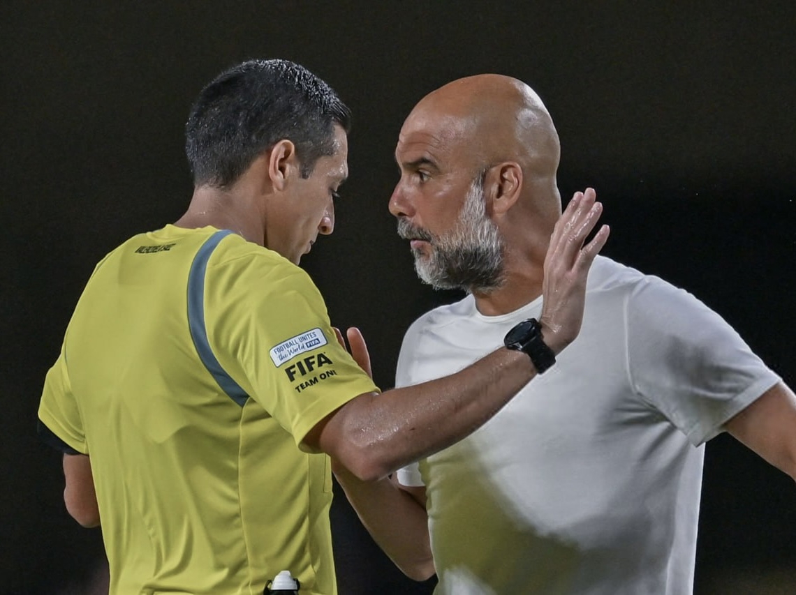 سرمربی منچسترسیتی در جریان بازی با الهلال با عصبانیت به خاطر خطای واضحی که روی دوکو اعلام نشد، به داور اعتراض کرد.