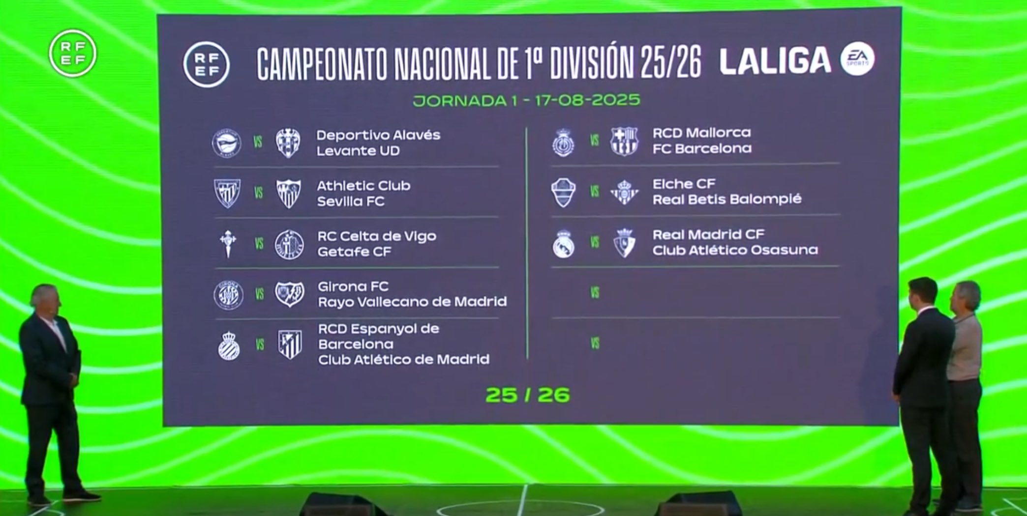 ۲۰ تیم حاضر در فصل ۲۶-۲۰۲۵ لالیگا، از ترتیب رویارویی با حریفان خود آگاه شدند.