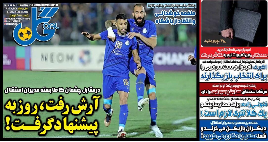 جلد روزنامه گل در روز چهارشنبه یازدهم تیر ۱۴۰۴ را تماشا می کنید.