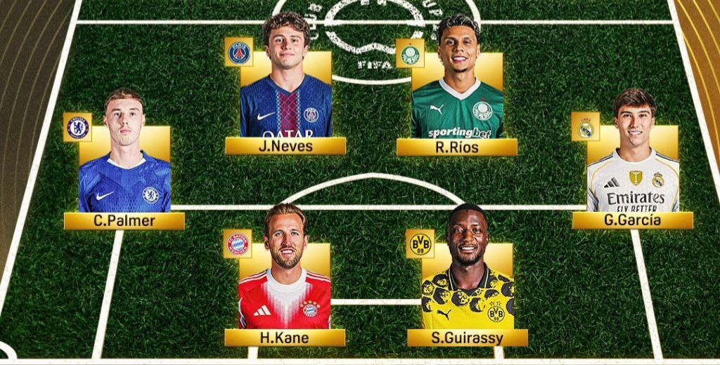 - هافبکها: گونزالو گارسیا از رئال مادرید، ریچارد ریوس از پالمیراس، ژائو نوس از پاری سن ژرمن، کول پالمر از چلسی