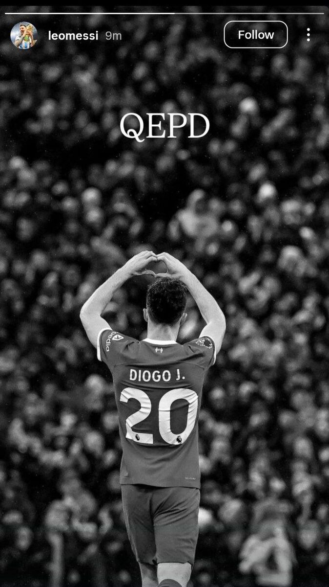 به دنبال واکنشها به درگذشت ژوتا، لیونل مسی هم با انتشار یک استوری اینستاگرامی به مرگ ستاره تیم ملی پرتغال واکنش نشان داد و نوشت: روحش در آرامش باشد.