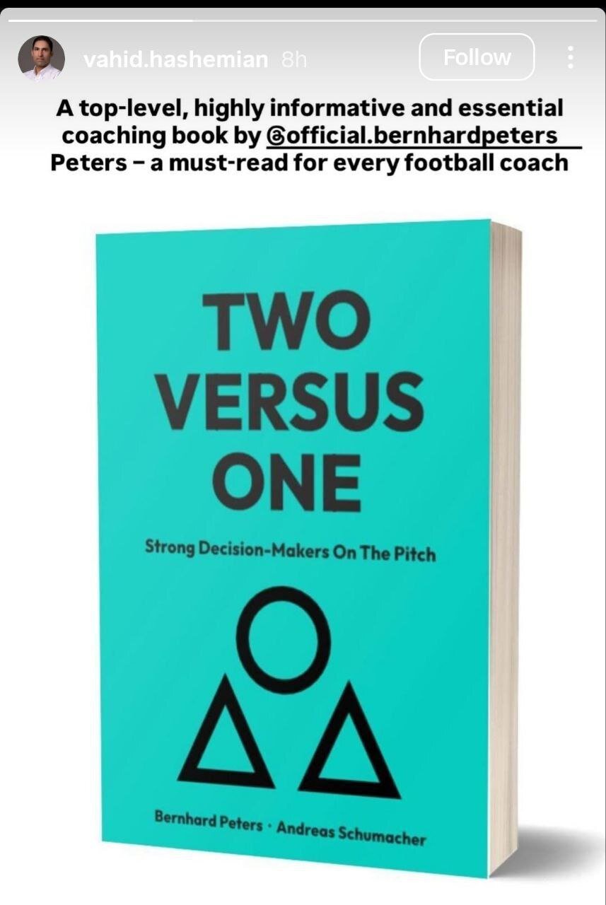 پس از اخبار مذاکره پرسپولیس با وحید هاشمیان حرفهای زیادی درباره حضور او روی نیمکت سرخها زده شد. هواداران پرسپولیس در فضای مجازی نظرهای متفاوتی داشتند اما این بحثها به برخی از پیشکسوتان هم رسید و دایره موافقان و مخالفان حضور او بزرگتر شد. وحید هاشمیان امروز یک استوری کنایهآمیز نسبت به حواشی اخیر منتشر کرد؛ آنهم توصیه به مربیان فوتبال برای خواندن کتاب دو در برابر یک.