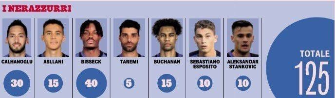 گرانترین بازیکن در فهرست مهرههای مازاد تیم؛ یان بیسک است که ۴۰ میلیون یورو قیمت دارد. گاتزتا مدعی شده که اینتر انتظار دارد از فروش بازیکنان مازاد خود ۱۲۵ میلیون یورو درآمد کسب کند.