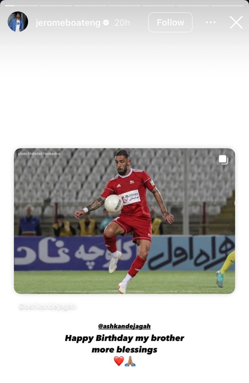 به گزارش خبرگزاری خبرآنلاین؛ ژروم بواتنگ، ستاره سابق تیم ملی آلمان و بایرن مونیخ با انتشار یک استوری تولد ۳۹ سالگی اشکان دژاگه را تبریک گفت.