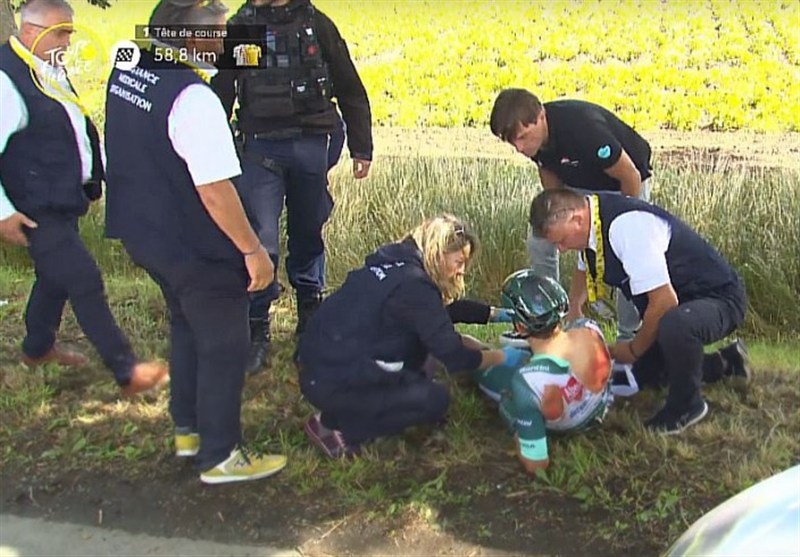 برنده مرحله نخست تور دوچرخهسواری تور دو فرانس مجبور به کنارهگیری از این رقابتها شد.
