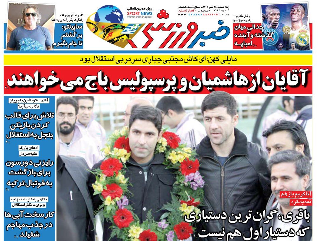 باج خواهی از وحید هاشمیان و پرسپولیس/ روزنامه خبرورزشی را یک شب زودتر در سایت خبرورزشی بخوانید