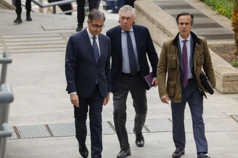 در جریان محاکمه که در روزهای ۲ و ۳ آوریل در دادگاه مادرید برگزار شد، آنچلوتی اظهار داشت که هرگز قصد فریب اداره مالیات را نداشته و تنها دستورات باشگاه و مشاورانش را دنبال کرده است.