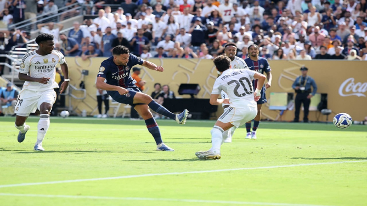 پاری سن ژرمن که بعد از نشان دادن اقتدارش در اروپا، حالا در حال قدرتنمایی در جهان است، با حذف بایرن مونیخ به این مرحله رسید و در این بازی خیلی زود و روی دو اشتباه مرگبار مدافعان رئال به دو گل زودهنگام رسید. ابتدا در دقیقه ۶ آسنسیو مدافع جوان پاریس اشتباه کرد و دمبله توپش را دزدید و فابین رویز آن را در درون دروازه قرار داد و سه دقیقه بعد رودیگر مدافع با تجربه رئال مادرید یک اشتباه مرگبار دیگر انجام داد و این بار خود دمبله دروازه را باز کرد.