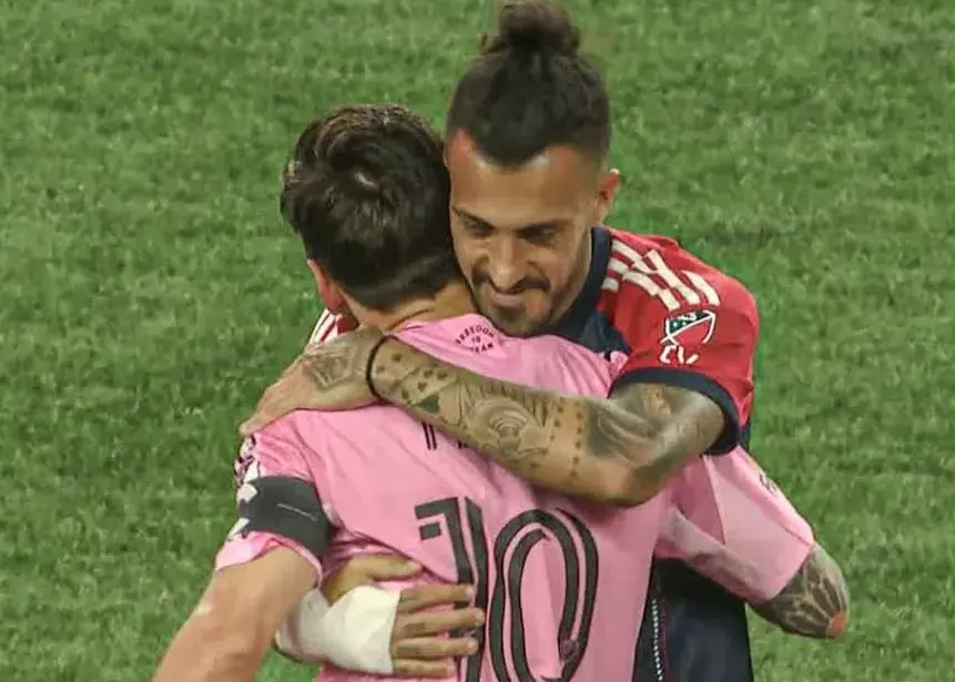 مکسی اوروتی، ستاره آرژانتینی نیوانگلند در بازی این تیم مقابل اینترمیامی موفق شد اسطورهاش را در آغوش بکشد. اورورتی آنقدر شیفته مسی است که خالکوبی لئو را روی پایش دارد.