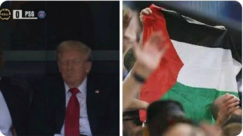 هواداران پاری سن ژرمن با بالا بردن پرچم فلسطین جلوی چشمان رئیس جمهور آمریکا موجب عصبانیتش شدند.