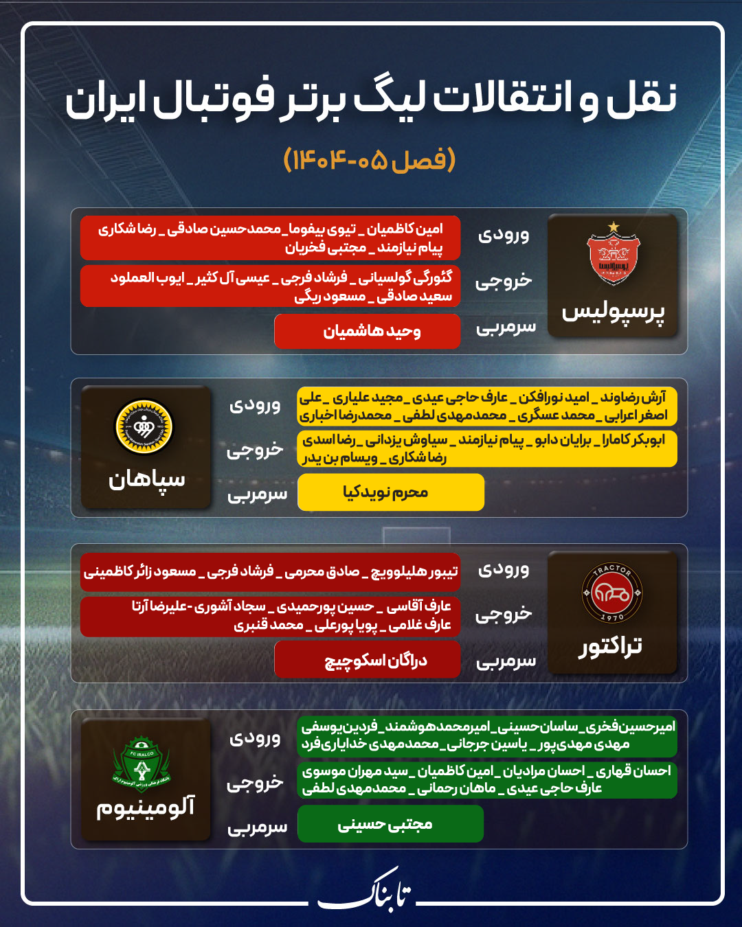 اینفوتابناک / نقل و انتقالات تیمهای حاضر در لیگ برتر تا به امروز